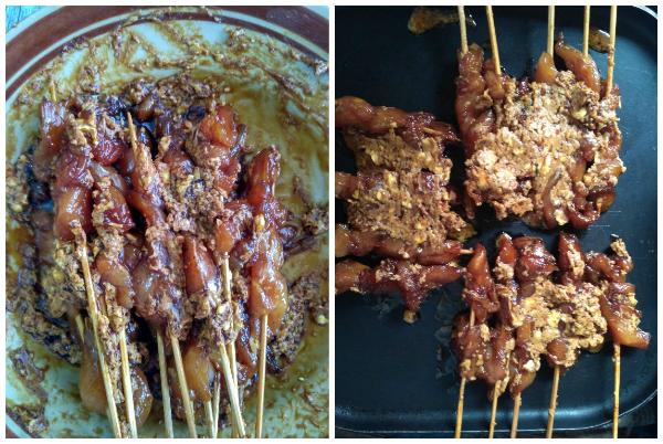 Sajikan sate dengan siraman sambal oncom dan uli bakar.